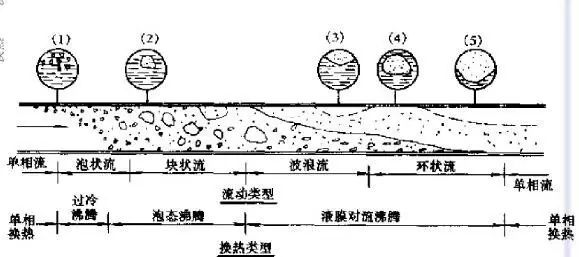 制冷裝置蒸發器內傳熱溫差不大,因此制冷劑液體的沸騰總處于泡狀沸騰。沸騰時在傳熱表面產生許多氣泡,這些氣泡逐漸變大、脫離表面并在液體中上升。它們上升后,在該處又連續產生一個個的氣泡。