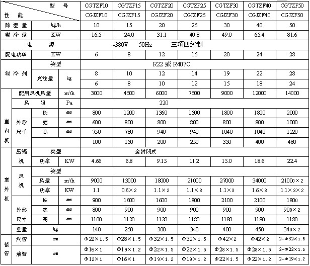 風冷調溫/降溫管道型除濕機